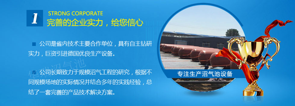 只有創(chuàng)新,不斷超越自己從而提升自己。我們秉承以人為本,員工第一,顧客至上,誠(chéng)信興商的企業(yè)理念,真誠(chéng)的為用戶提供高質(zhì)量的大型沼氣工程,產(chǎn)品和服務(wù),是我們的使命和存在的價(jià)值,公司面向未來(lái)經(jīng)濟(jì)持續(xù)增長(zhǎng),社會(huì)和諧發(fā)展的趨勢(shì),愿與廣大客戶加強(qiáng)合作,為客戶提供不同需求的沼汽池產(chǎn)品。公司擁有先進(jìn)的小型沼氣池